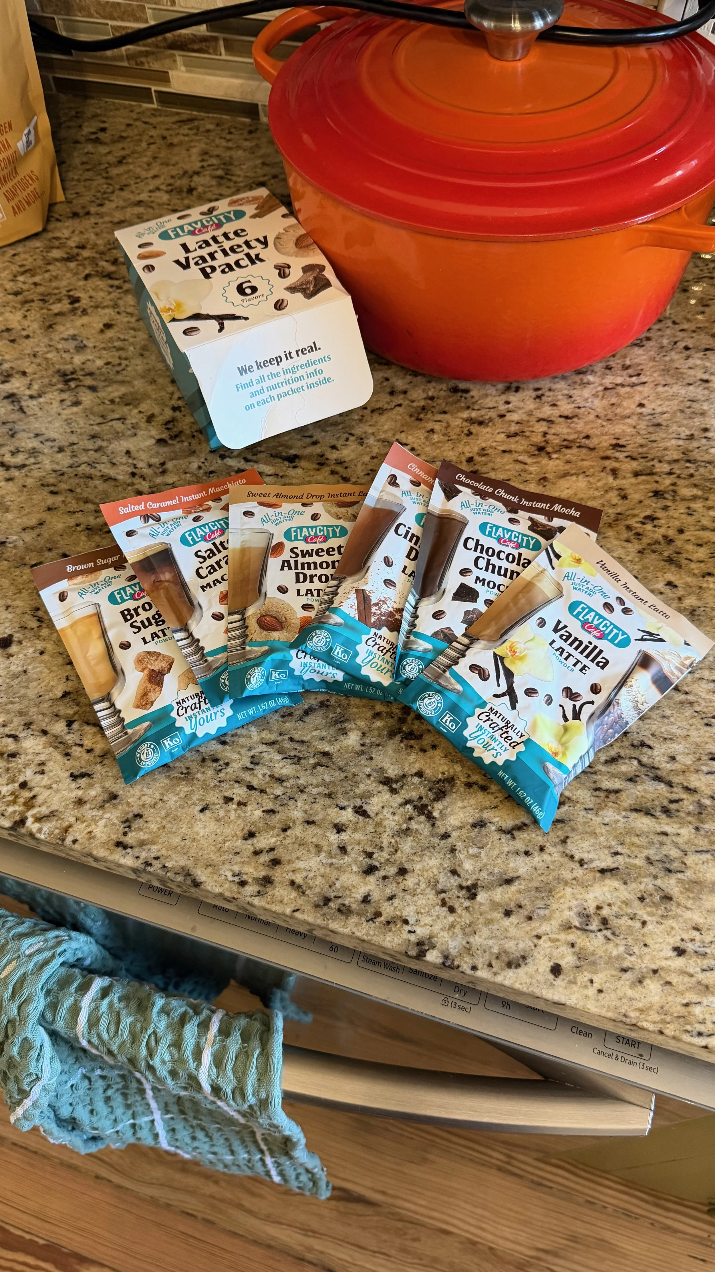"Why don't you just try FlavCity Café?" she asked, pulling out a packet from her purse. "Their Chocolate Chunk Mocha is actually really good."